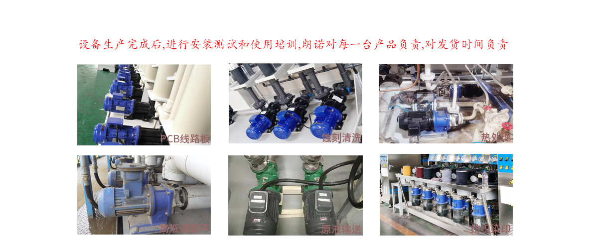無錫郎諾機電設備有限公司是以PCB,LCD,電鍍,超聲波清洗,污水處理等行業為依托的專業泵浦研發、生產和銷售公司,主營產品有耐酸堿磁力泵、防腐蝕磁力泵、不銹鋼磁力泵、排污自吸泵、耐腐蝕立式泵、氣動隔膜泵和電鍍過濾機等。并代理泓川牌化工泵。在同行業中口碑較高,是化工泵浦行業規模較大、服務良好的公司之一,同時為客戶提供適用于PCB、LED、玻璃清洗、電鍍、環保等各種行業耐酸堿防腐蝕泵浦及配件設備,并配以專業的維修隊伍和優質的售后服務!